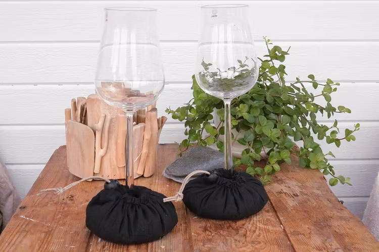 Vinglashållare grön - Vingel I lager. Antal: 4 220 kr LÄGG I KORGEN Dubbelsydd 'påse' med sand för att sätta foten till vinglaset i.Perfekt då man är på picknick eller stranden och behöver ställaner glaset på ett ojämt underlag.Går utmärkt att använda i båten.Sälj endast i tvåpack.Vinglasen ingår ej.