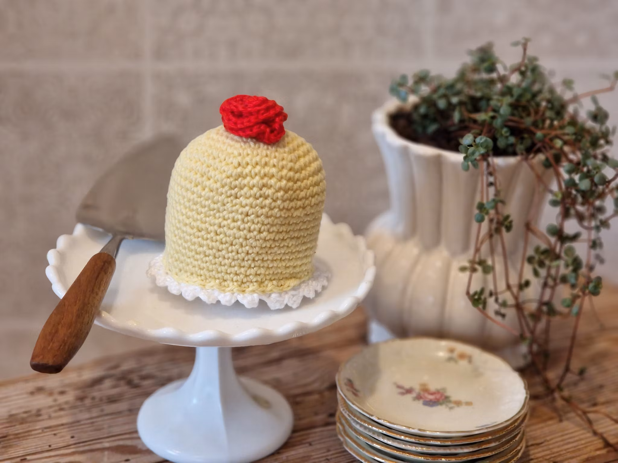 Ljuvlig liten virkad bakelse.